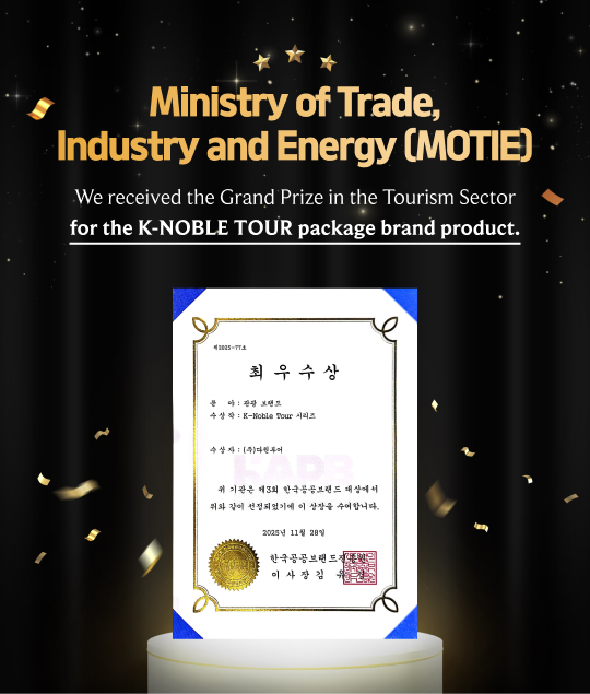 K-NOBLE TOUR provides a professional English guide’s lead service and will proceed with No Tip, No Shopping, and No Option.